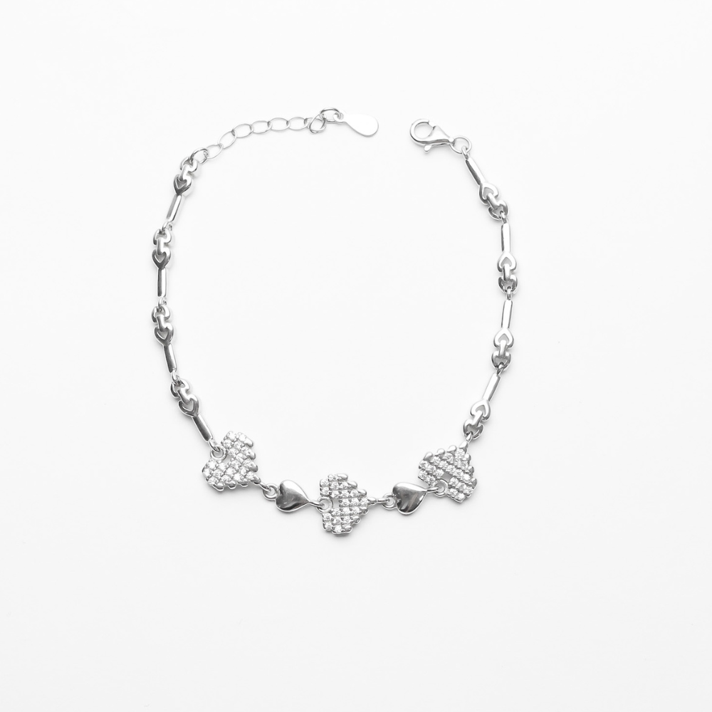 Intricately textured heart charms paired with a sleek chain, the Leila Everyday Bracelet is a bracelet meticulously crafted in 925 sterling silver designed to catch light with every movement.