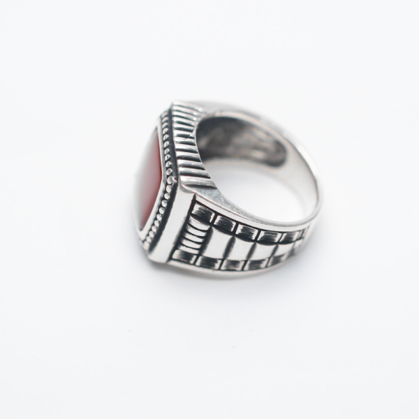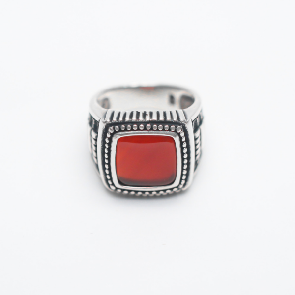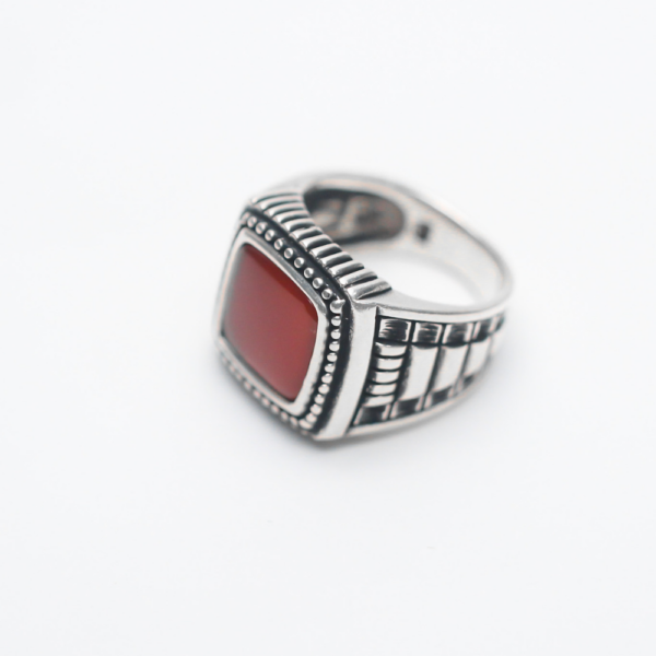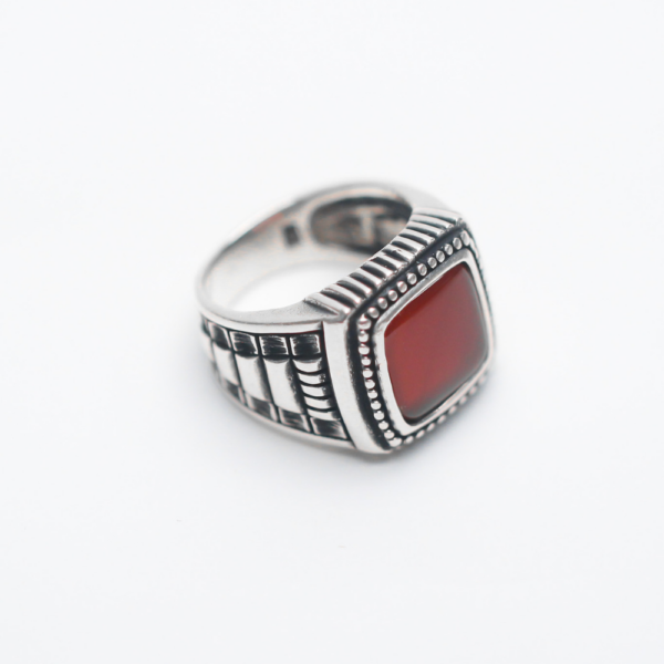 The Alle ring is a bold men’s Turkish ring crafted in 925 sterling silver, with a striking red agate and an oxidised finish to add strength, structure and character to your everyday look!