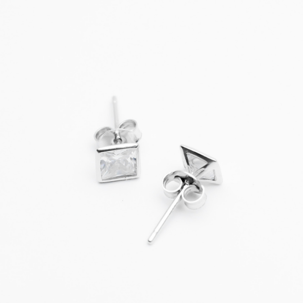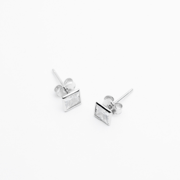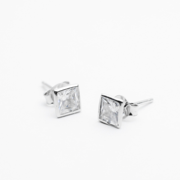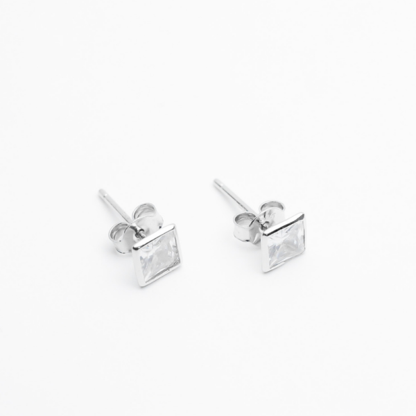 Square-cut diamonds set in a sleek silver bezel, the Blake Minimal Studs are perfect to add a hint of sophistication to your everyday ensemble.