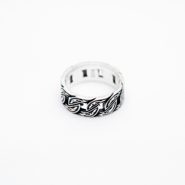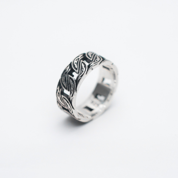 Leaf-like swirling pattern featuring a bold, oxidised finish, the Dio ring is for those who want to add a rugged feeling to their look.