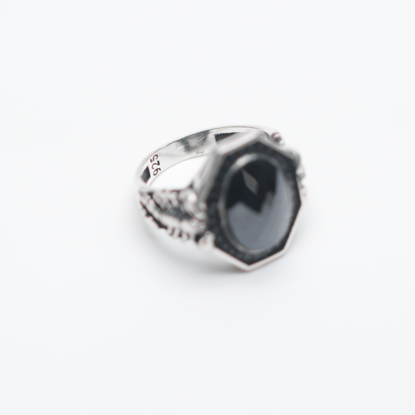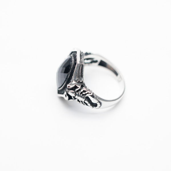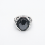 Unapologetically sharp, the figaro turkish ring features a bold faceted black diamond framed with the most intricately placed American diamonds, all crafted meticulously in oxidised 925 silver.