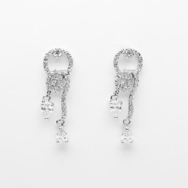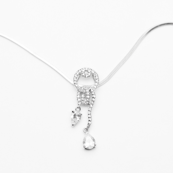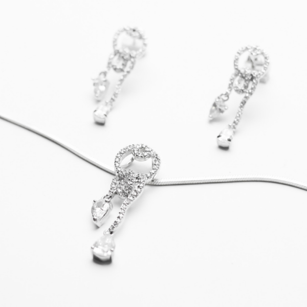 Timeless, refined, and elegant – the Giselle pendant set features intricately designed silver drops adorned with choice American diamonds, adding a soft elegance to your special occasions.