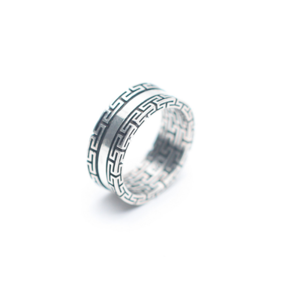 Etched with bold geometric patterns – the krater band features sharp lines and modern depth, becoming the perfect blend for timeless style. Only at M&R Jewels!