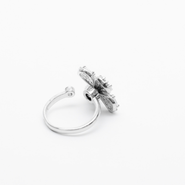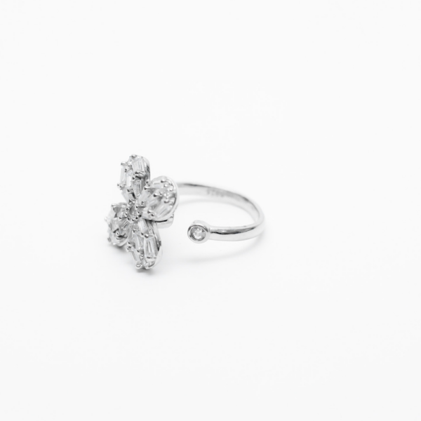 A graceful silver ring designed with a delicate petal-shaped motif and subtle sparkle. Feminine, elegant, and timeless—perfect for adding a soft floral touch to your everyday style.