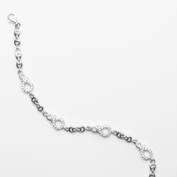 Featuring delicate circular links accented with subtle sparkle, the Paige everyday bracelet is crafted in 925 sterling silver, bringing a minimal yet refined vibe to your everyday look.
