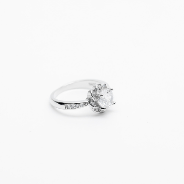 Exuding a quiet confidence, the quinn diamond ring features a clean, minimal pavé band with a delicately placed round cut diamond in the centre surrounded by an intricately designed frame – perfect for the ones who like to make a subtle statement.