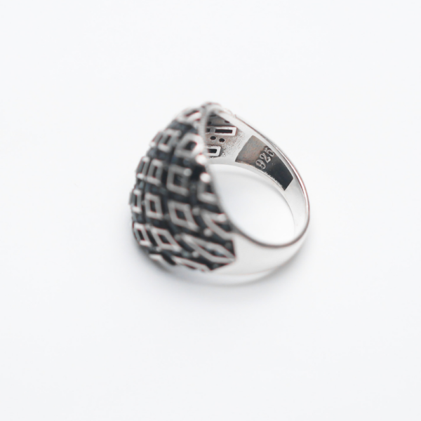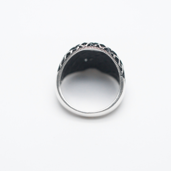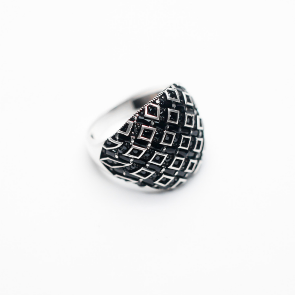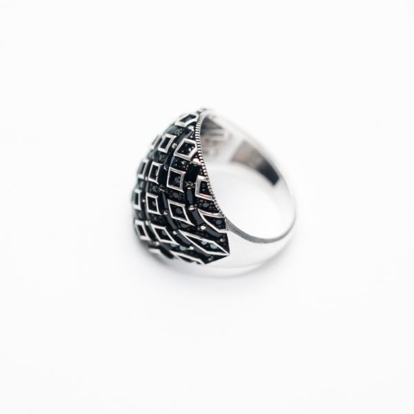 Blending two tones of silver together, the raya ring features an intricate geometric texture studded with carefully placed american diamonds, becoming the perfect testament of heritage with style!