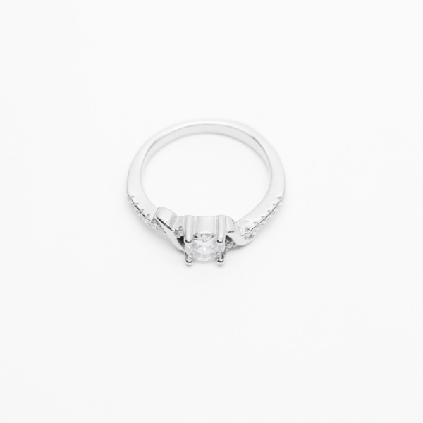 Refined silver band with a raised crown-set stone exuding a sophisticated glow – the Rey Diamond Ring is delicate, regal, and captivating.