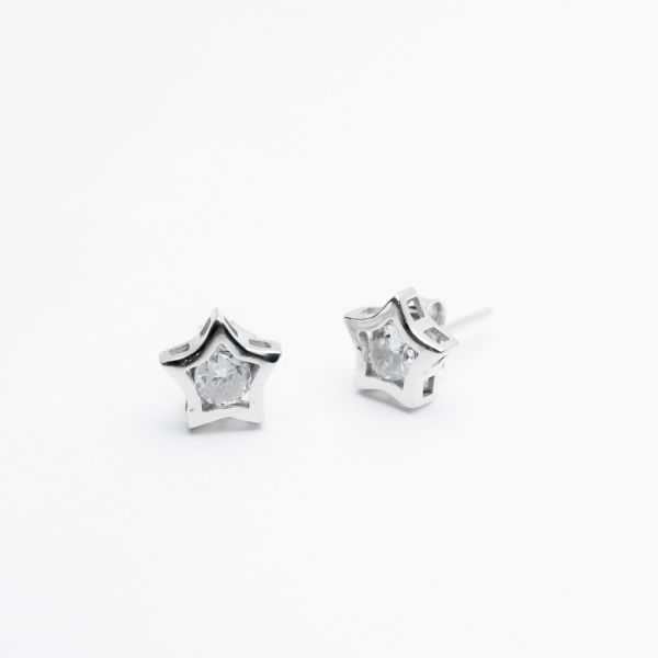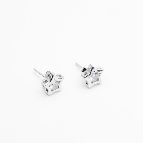 Round cut diamonds intricately set in a star-shaped case crafted in 925 sterling silver, enhance the elegance and the versatility of your everyday look.
